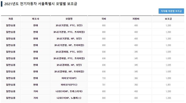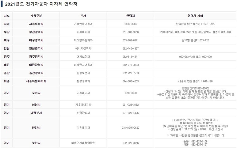 원하는 차종별로 얼마나 보조금을 받을 수 있을지 궁금하신 분은 통합 콜센터 (1661-0970) 또는 관련 지방자치단체 해당 부서에 연락해 보시면 전기차 보조금 중 지방보조금에 대한 내용을 안내받으실 수 있습니다.